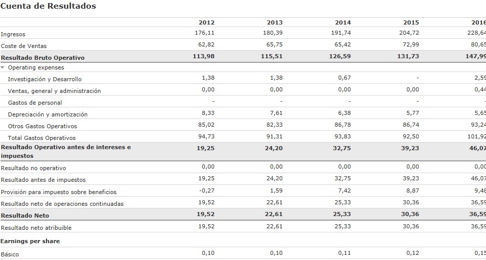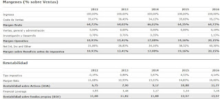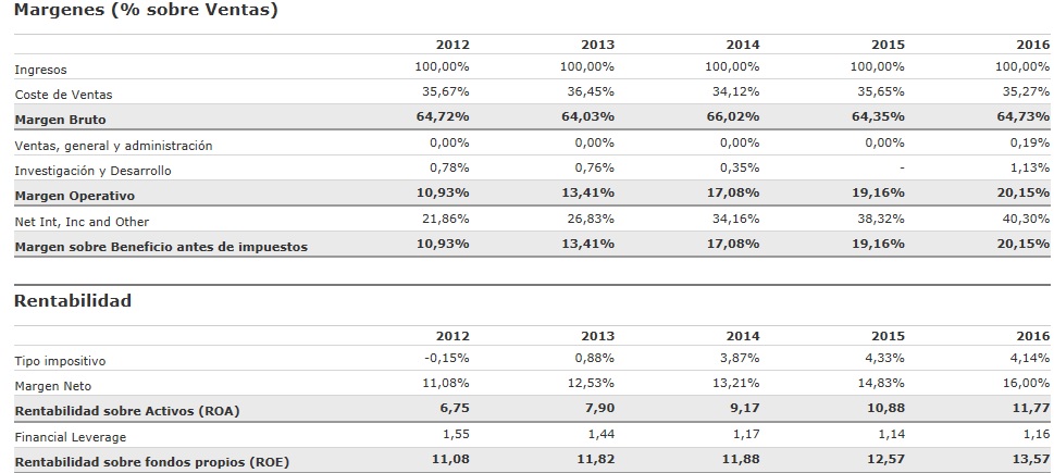 -Crecimiento importante en ventas y beneficios los último años creciendo a una tasa importante. Márgenes muy buenos y ratios ROES, ROA muy buenos.