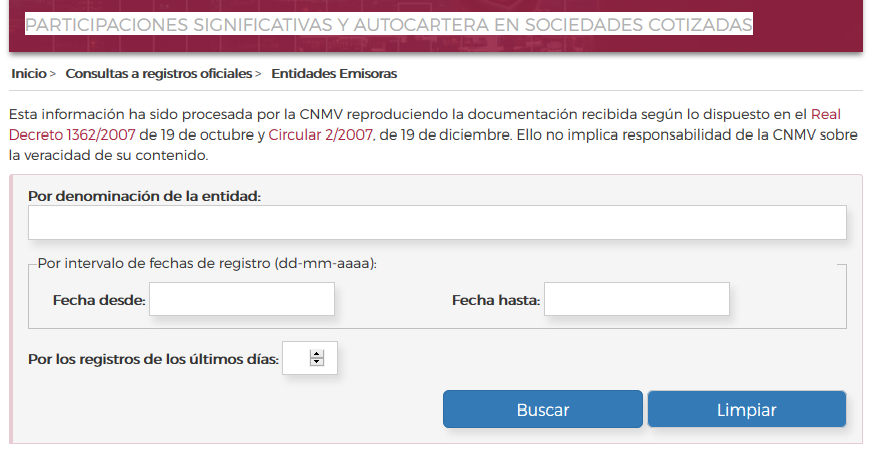 He creído conveniente hacer esta entrada para enseñar cómo localizar de forma fácil quiénes son los principales accionistas de una sociedad cotizada en la bolsa de España.