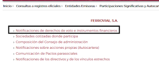 Tecleamos el nombre de la empresa que nos guste, por ejemplo FERROVIAL y le damos a buscar, nos aparece la siguiente imagen: