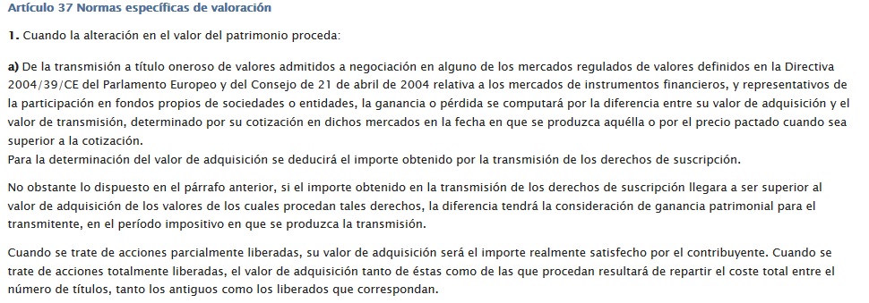"El importe de las ganancias o pérdidas patrimoniales será en el supuesto de transmisión onerosa o lucrativa, la diferencia entre los valores de adquisición y transmisión de los elementos patrimoniales"