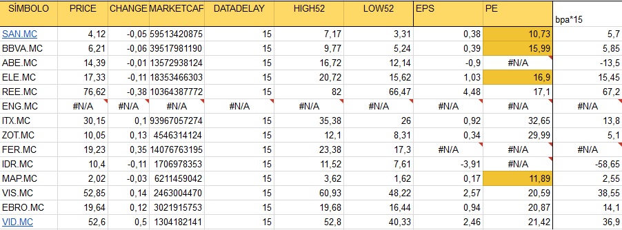 Siendo 22,5 el producto de multiplicar un PER DE 15 por un precio valor contable de 1,5. Digamos que eran los máximos que aceptaba BEN.