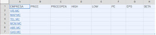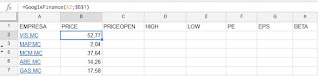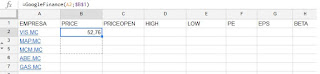 Para la primera Empresa= GoogleFinance( A2;B1)