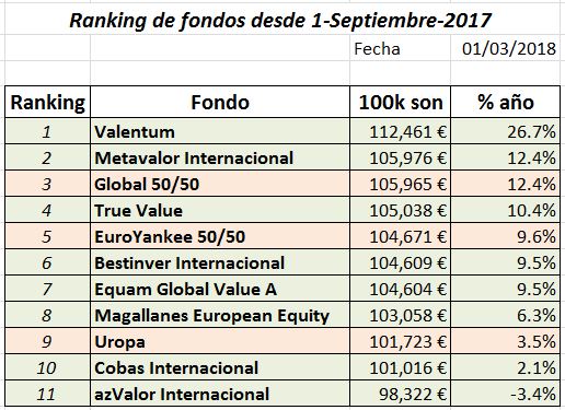 Por la parte baja de la tabla tenemos a Cobas y azValor, rivales a muerte por temas de todos conocidos que parece que se han tomado como misión ofrecer una rentabilidad mediocre, inclusive con pérdidas en el caso de azValor. Pienso que subirán en el ranking en años sucesivos, pero de nuevo sólo el tiempo podrá desvelar la incógnita.