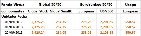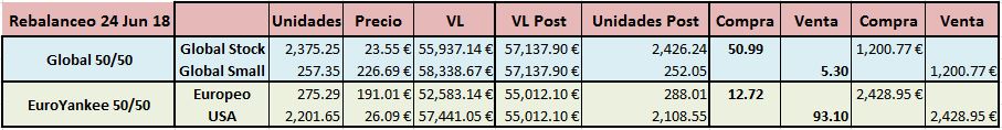 Con ello ya es sencillo ver que compra y que venta hay que hacer, en unidades y en Euros. ¿Simple, no? Lo mismo se aplica a nuestro fondo EuroYankee 50/50.