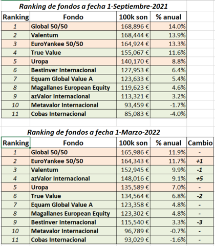 2. Valentum que tenia un muy meritorio segundo lugar (primera linea de la parrilla de salida) baja ahora al tercer puesto. Con todo su casi 10% anual de rentabilidad merece un gran aplauso.