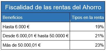 La base imponible del ahorro tributa por tramos, según su importe total y en los siguientes: