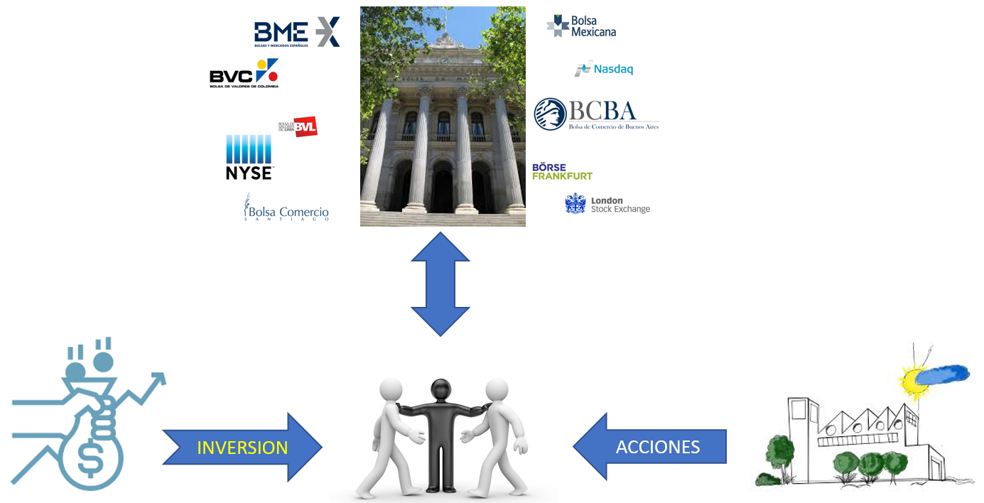 La Bolsa es un mercado financiero, es una red global que organiza el mercado, donde se efectúa la compra-venta de acciones de empresas cotizadas, mediante la aceptación de órdenes dadas por los inversores y que llevan a la formación de un precio por la oferta y la demanda.