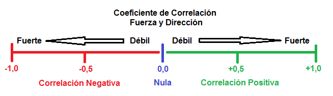 Para determinar el coeficiente de correlación, se parte de los rendimientos a partir de los precios de los valores analizados, calculando su covarianza y su volatilidad (para quien no conozca estos términos, los veremos mas detallados en el próximo post). El valor estará acotado generalmente entre -1 y +1, por tanto, un valor cuando se va aproximando a +1 significará mayor correlación (si un precio sube/baja, el otro precio también subirá/bajará, en la misma o menor intensidad cuando mas o menos se aproxime a +1), un valor que se aproxima a -1 significa una correlación negativa (el precio de un valor sube y el otro baja o viceversa), mientras que si la correlación es 0 o muy cercano, no existe correlación.