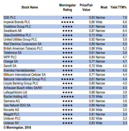 Si observamos el conjunto de mercados europeos, teniendo en cuenta tanto el dividendo, como las posibilidades de crecimiento de los sectores a los que pertenecen, observamos que los sectores, mayoritariamente, mejor valorados son los servicios públicos, las telecomunicaciones y la salud.