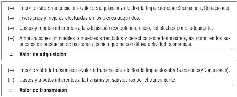 El importe que corresponde o deriva de una transmisión, se determinará por diferencia entre el valor de transmisión (valor liquidativo aplicable en la fecha de la transmisión o reembolso) y el valor de adquisición del bien transmitido descontados los gastos deducibles fiscalmente (gastos de suscripción y gastos de reembolso de las participaciones, que existan), según se especifica en el siguiente cuadro: