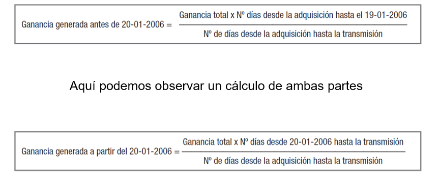 - Calcular la parte de ganancia patrimonial obtenida antes del 20 de Enero de 2006.