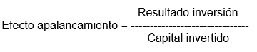Por tanto, el efecto apalancamiento, es la relación que existe entre el resultado de la inversión y el capital invertido.
