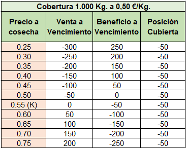 Precio forward (K) = 0,50 €/Kg (500 €.)