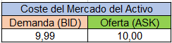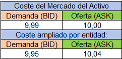 - Por cada operación (apertura y cierre del contrato): Al realizar el contrato utilizando los precios de mercado (Demanda u Oferta) del activo subyacente en ese momento, la entidad nos carga una comisión (porcentaje).