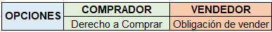 Se llama opción porque el comprador no está obligado a realizar la transacción contractual, es decir, por ejemplo, si durante la vigencia del contrato, el valor del subyacente disminuye, el comprador de la opción simplemente puede optar por no ejercer el derecho a comprar o vender el activo.