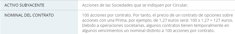 Nº de contratos de opción x Tamaño de contrato