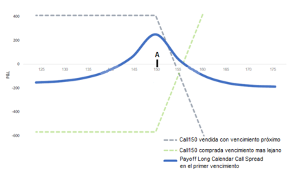 · Compra Call A (ATM o muy próximo) vencimiento más alejado.