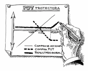 Veamos que ocurre si se posee una Put comprada sobre acciones, lógicamente cubierta con el título de ese subyacente, en la que ejercer la opción es la venta de acciones y recibiendo efectivo antes de su vencimiento en lugar de a su vencimiento.