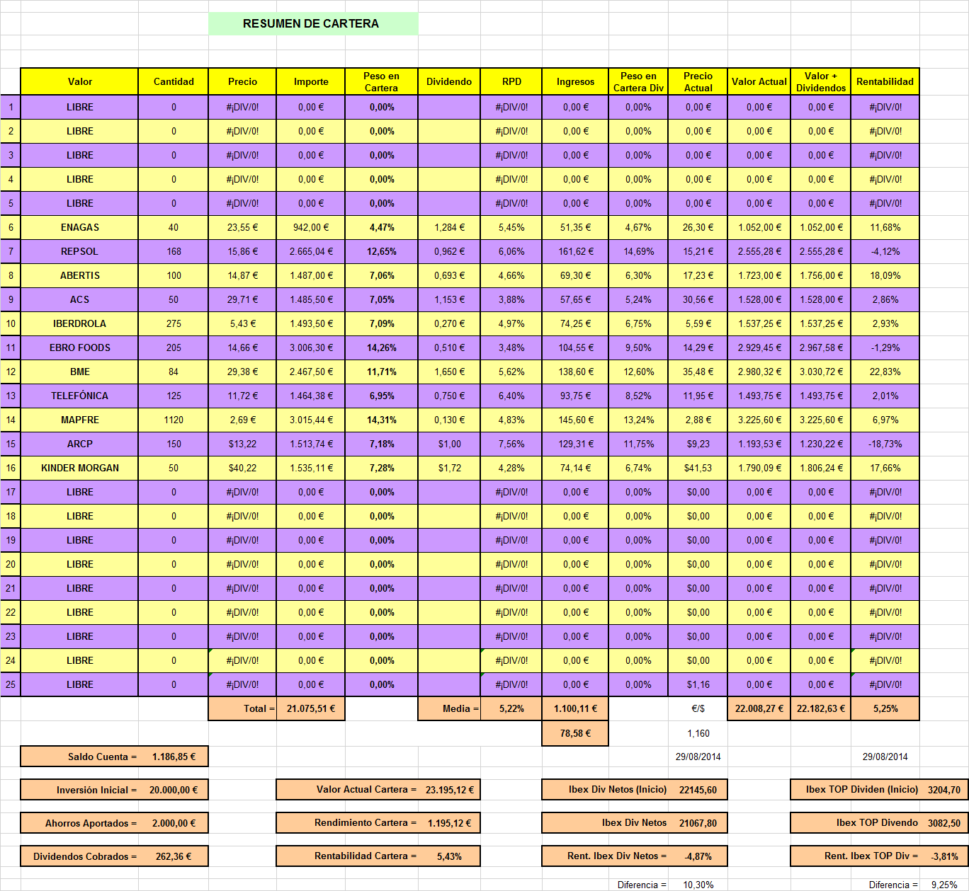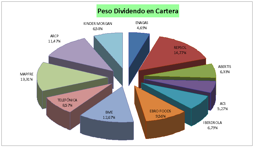 Sinceramente, para mí los resultados son hasta sorprendentes porque estamos superando al Ibex CON dividendos en más de un 10% (a pesar de mantener ARCP). Podríamos discutir si el Ibex es el mejor comparador, pero es que tenemos una cartera que hasta ahora es mayoritariamente española (de USA sólo KMI y ARCP) y por eso creo que es donde mejor nos podemos comparar. Con el tiempo la cartera irá creciendo y se irá haciendo más internacional, mi cartera personal tiene un peso del dividendo USA del 20% y 1% de UK, todavía en formación pero más avanzada.