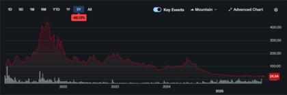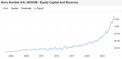 Pero a partir de junio de 2024 la acción se desploma. Entre otras razones, por su incapacidad de hacer frente al aumento de pedidos, y por tanto a la competencia de otras farmaceúticas (Ely Lilly principalmente) y de fármacos "piratas". Desde entonces Novo intenta parar a la competencia legalmente, pero esto será dificil.