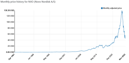 El que esté leyendo este artículo sabe que el precio de la empresa explotó en 2021, cuando se aprobó su medicamento Wegoby (semaglutida) para el tratamiendo de la obesidad. Un medicamento que, originalmente, está diseñado para el tratamiento de la diabetes pero que tiene este curioso efecto secundario.