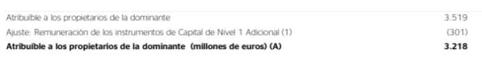 2. Ninguna de las sociedades indicadas ha elaborado un término para referirse al beneficio neto atribuido después de imputar los rendimientos de los CoCos u otros instrumentos similares. Por ejemplo, BBVA solo diferencia ambos conceptos en la tipografía aplicada: