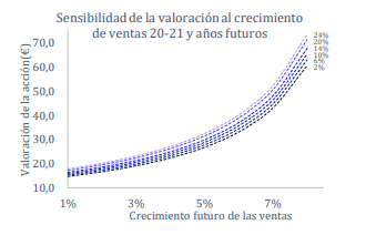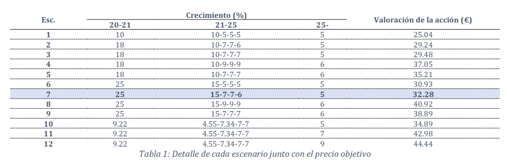 Se ha escogido el escenario 5, con un valor estimado para la compañía de 32.28€ por acción.