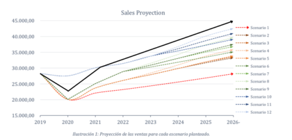 En primer lugar, las ventas para el año 2020 se han estimado aplicando las ventas medias por tienda a cada una de las tiendas abiertas y corrigiéndolas por un factor (<1) que recoge la disminución de las ventas por tienda asociadas al deterioro en el consumo por el Covid-19; las ventas online se han corregido también ponderando por un factor (>1) que recoge el aumento asociado a la disminución de la venta física.