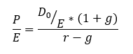 Si asumimos que el payout ratio es del 100% (todos los beneficios se reparten en forma de dividendos) y que g=0 (no existe crecimiento en los dividendos), nos queda la siguiente relación: