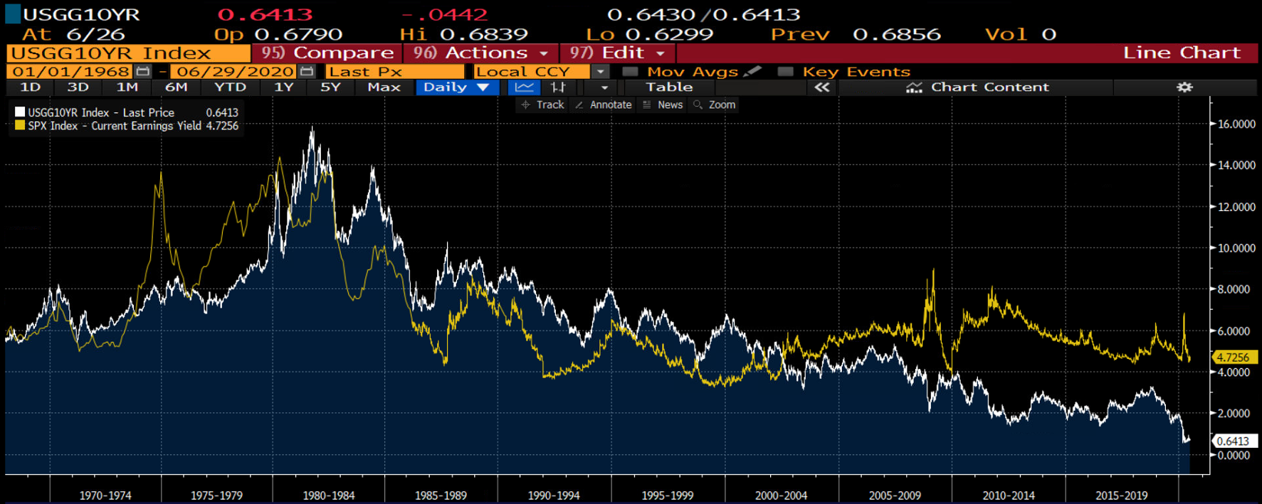 Donde Y es el yield to maturity del bono del Tesoro americano a 10 años y E/P se corresponde al earnings yield del S&P 500, es decir, el inverso del ratio Price-to-equity.