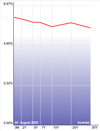 Curva de tipos invertida. Fecha 24/8/2000. Fuente stockcharts.com
