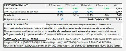 Este es el cuadro de la previsión y seguimiento de ACS: