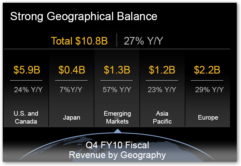 El negocio parece estar bastante bien distribuido geográficamente, y como sucede con la mayoría de las compañías, cuando uno analiza los números se observa claramente que las tasas de crecimiento más elevadas provienen de mercados emergentes: