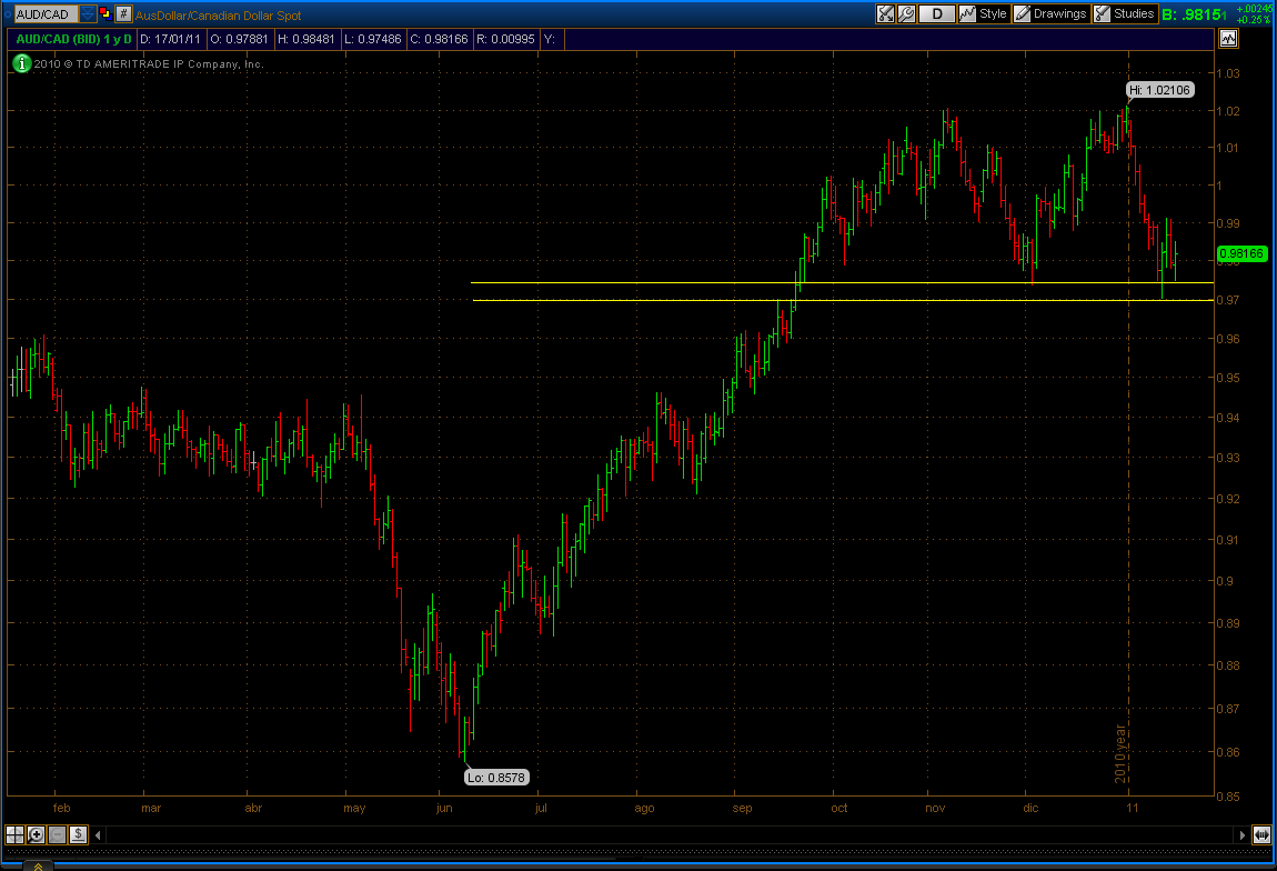Otra alternativa interesante es la de operar el cruce Dólar Australiano / Dólar Canadiense, dado que Canadá es un exportador neto de commodities al igual que Australia, ese cruce no debería ser tan dependiente de la evolución de los precios de las materias primas, y por lo tanto no es una apuesta tan direccional al respecto del rumbo de los mercados en general.