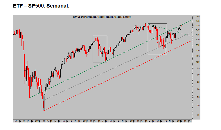 Una corrección de incluso 100 puntos de SP500 sería dura pero no descartable, técnicamente no dañaría significativamente la situación. Sería en el fondo saludable para el mercado, restableciendo el equilibrio entre oferta y demanda en niveles más adecuados.