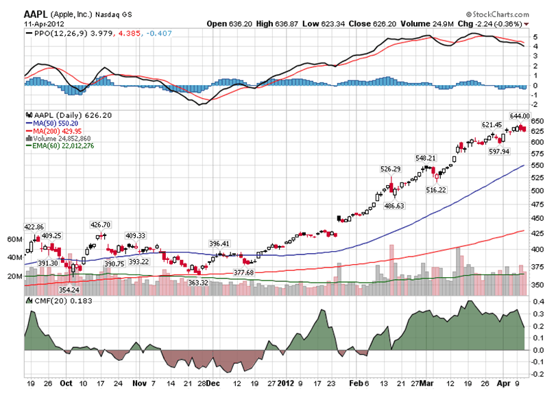 Será de gran interés conocer la cita de Apple, prevista para el próximo día 24, una empresa que ha batido las expectativas en 14 de los anteriores l5 trimestres y con un margen del 24%. El momentum de la compañía es envidiable y según los datos preliminares, la compañía debería batir expectativas este trimestre también. Más vale sea capaz de conseguirlo, tiene la responsabilidad de refrendar la espectacular subida de su cotización, tal como refleja el gráfico siguiente,