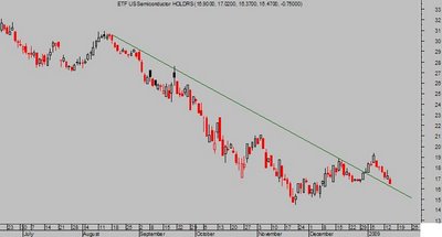 Por el momento aguanta también este índice sus respectivas zonas relevantes de soporte. Esta contención en las caídas es refrendada además por el subíndice de semiconductores, que habiendo caído significativamente también, se encuentra haciendo un pull-back sobre la línea de tendencia superada semanas atrás, nivel que además coincide con el retroceso proporcional al 61.8% del tramo alcista previo iniciado en noviembre.