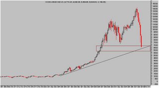 En el gráfico anterior aparece un rectángulo mostrando la zona de soporte más probable desde la que el mercado debe reaccionar y protagonizar el rebote alcista más intenso -esperemos -también de la historia de varios meses de duración.