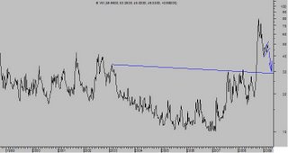 INDICE VOLATILIDAD VIX. Semanal. Semilog. 1998-2.009