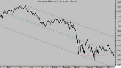 De momento, el Nasdaq y el índice de semis se han comportado muy bien rebotando justamente donde debían, como mostré en las gráficas adjuntas en el anterior escrito. El SP500 y el Dow Jones han perdido niveles de soporte no críticos y cabe la posibilidad de un intento adicional de asalto al alza, que para ser confirmado deben ser capaces de superar los 900 y 8650 puntos respectivamente. En tal caso se abriría una ventana de oportunidad para continuar el ascenso con objetivos en las zonas de 1.010 y 9.650 puntos.