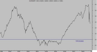 Será muy interesante observar la respuesta del Euribor en las próximas fechas porque el mercado interbancario sigue inmerso en el miedo y manifestando falta de confianza, escasa actividad y operaciones centradas prácticamente en el día a día. Operaciones a más de una semana apenas se cruzan. Además, los indicadores de riesgo están por las nubes y empeorando, además el indicador de riesgo crediticio Itraxx Crossover está superando esta semana por primera vez en la historia el nivel de los 1.000 puntos.