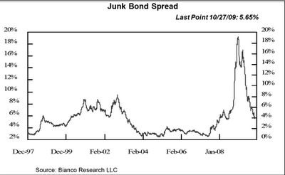 El rally experimentado por el mercado de bonos corporativos en los últimos 10 meses ha sido espectacular. Actualmente, el diferencial entre los bonos con calificación superior a Baa y los bonos del Tesoro a 30 años se ha estrechado hasta niveles mínimos de julio de 2.007. Más relevante, si cabe, es la gran caída del diferencial con los junk bonds; actualmente no reflejan el riesgo debidamente.