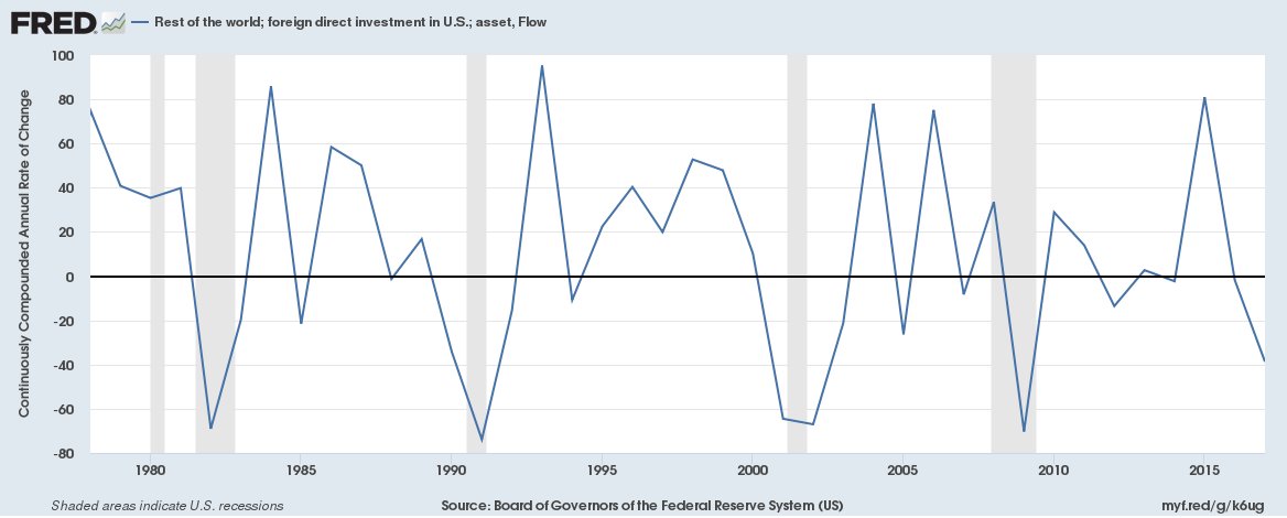 La inversión extranjera directa en USA cayó alrededor del 40% en 2017 y muy es relevante considerar que esta caída podría acentuarse este año con motivo de las políticas proteccionistas aplicadas.