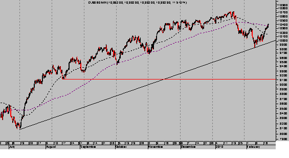 Cierres sobre la cota de los 10.460 puntos aproximadamente pueden incluso provocar una vuelta del índice en busca de los máximos de enero. Por el contrario, cierres por debajo de la zona 10.150 acentuarán el escenario de caída, que, a bote pronto, indican una proyección hacia el entorno de los 9.200 puntos.