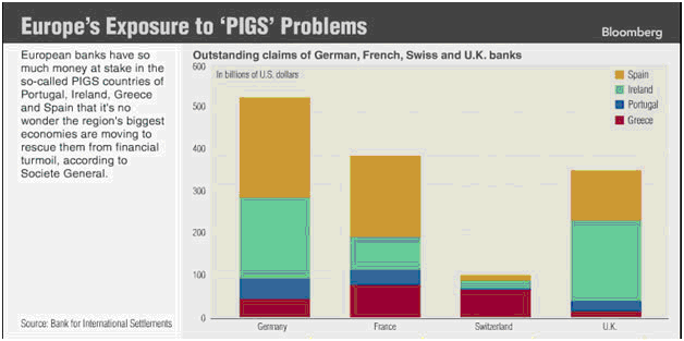 Observen la exposición bancaria de Alemania, Francia, Suiza e Inglaterra a los PIGS.