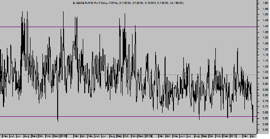 Observen la situación del ratio arriba expuesto, reflejando una complacencia considerable, peligrosa y no observada desde diciembre de 2.007, momento a partir del cual el mercado se dividió por dos.