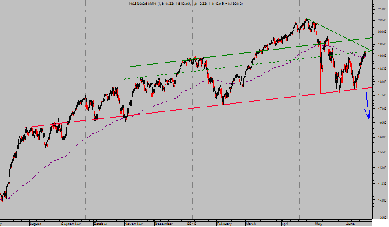 La pasada semana indicaba que si el Nasdaq100 superaba los 1885 puntos habría que revisar el escenario. Bien, de momento hay que introducir en la ecuación el factor X, o vergonzante manipulación antes citada, y poco más, dado el escaso apoyo técnico de que ha disfrutado el fuerte rebote en precios.
