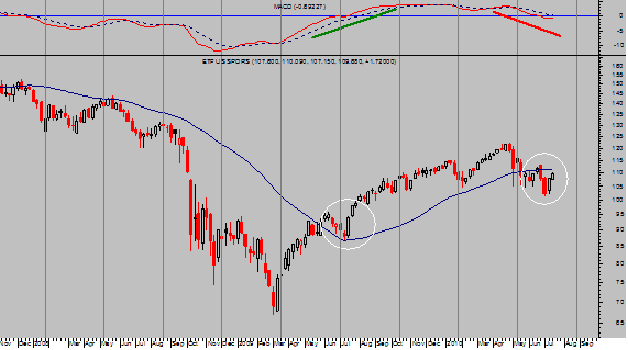 Como se aprecia en la grafica, la posición técnica del índice es básicamente desigual e incomparable a la de 2.009. Es incluso opuesta en cuanto a la situación de la media móvil –trazo azul- entonces soporte y ahora resistencia. También opuesta la media de 50 sesiones –no expuesta- que acababa de romper al alza sobre la de 200 cuando ahora se ha producido la ruptura inversa (death cross). El indicador arriba, MACD, estaba en plena subida y a punto de romper al alza el nivel 0, y lo consiguió, sin embargo ahora el MACD muestra sus medias cortadas a la baja y ya ha roto levemente por debajo del nivel 0. La posición del mercado interpretada dentro del ciclo presidencial era entonces favorable y ahora es la más negativa de los 4 años.