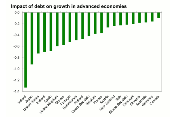 Frente a esta aseveración tan básica como precisa, se encuentran las autoridades combatiendo contra viento y marea con políticas desorientadas en origen, según indica el Sr. Gross. Con el paso del tiempo se esclarecerá si ha merecido la pena tal combate pero de momento, están perdiendo la batalla de la confianza y empleando esfuerzos económicos inexistentes –contra deuda-. Más si cabe, de manera errante diría mirando el cuadro siguiente del impacto de deuda sobre el crecimiento.