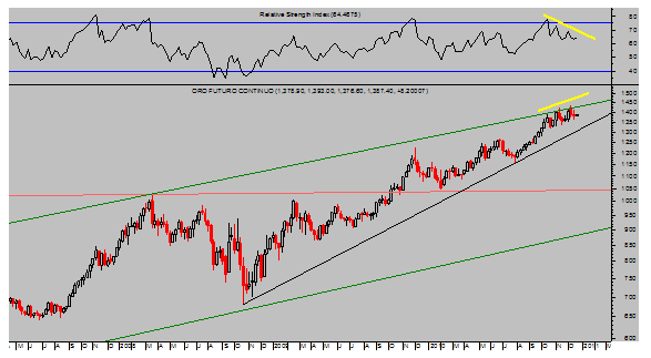 Técnicamente cansado, sobre-comprado y muy extendido, con divergencias técnicas varias, datos de participación extremos y los Commitment of Traders enviando señales de alerta continuamente. Continuamos en la misma idea técnica expuesta en el escrito del pasado 17 de diciembre “Previsiones 2011. ¿Conforma Goldman Sachs opinión contraria en oro?”